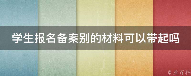 学生报名备案别的材料可以带起。学生报名备案需携带的材料有:学生户口簿、学生身份证以及家长身份证;相片;报名表和报名费;学籍材料;成绩单;档案材料;其他证明材料。