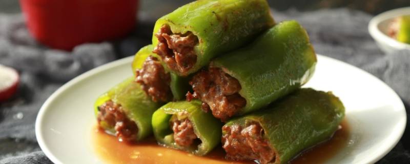尖椒酿肉粘不上是因为没有放淀粉。给尖椒里边抹淀粉也是为了让肉馅受热的时候更好的粘合,要抹匀,多抹一些,煎的时候最好先煎尖椒那一面,这样可以先让接触尖椒的肉馅受热,会粘的更牢固一些,但是在煎的过程中尽量少动它,不然也容易脱离。