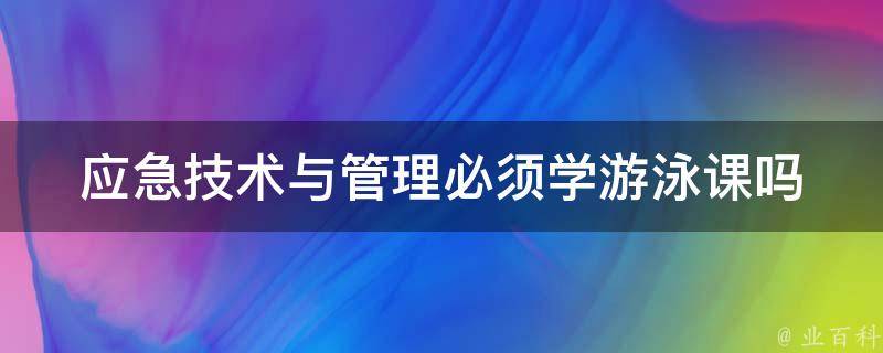 应急技术与管理必须学游泳课。游泳课程是应急技术与管理专业学生的必修课程之一,主要目的是为了让学生掌握基本的游泳技能,以便在紧急情况下能够自救或救助他人。此外,游泳课程还可以锻炼学生的身体素质和增强自信心。