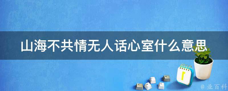 山海不共情无人话心室的意思是山与海无法与自己共情,没有知心的人可以说话。山海指的是山与海,喻指荒远偏僻之处,比喻高深、繁多或重大,也指山珍海味。共情指的是深入对方内心去体验他的情感、思维,把自己的共情传达给对方,以影响对方并取得反馈。