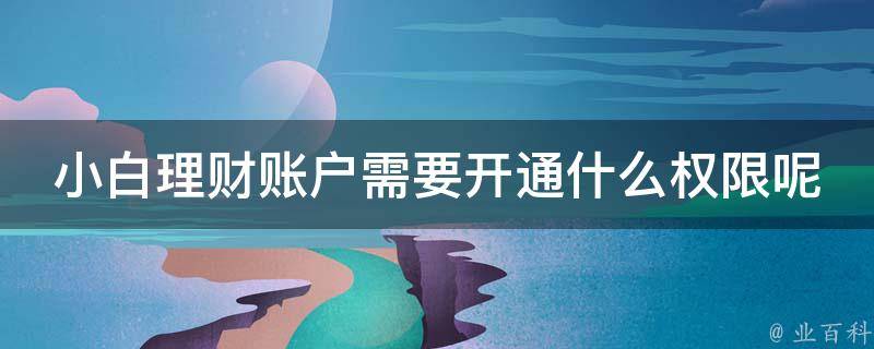 小白理财账户需要开通网上银行和手机银行功能,还要申请一个证券账户,并开通股票、基金等交易权限,这样可以方便用户购买和赎回理财产品。券商账户的理财品种相对多一些的,可以在自己的证券账户上管理自己的理财。