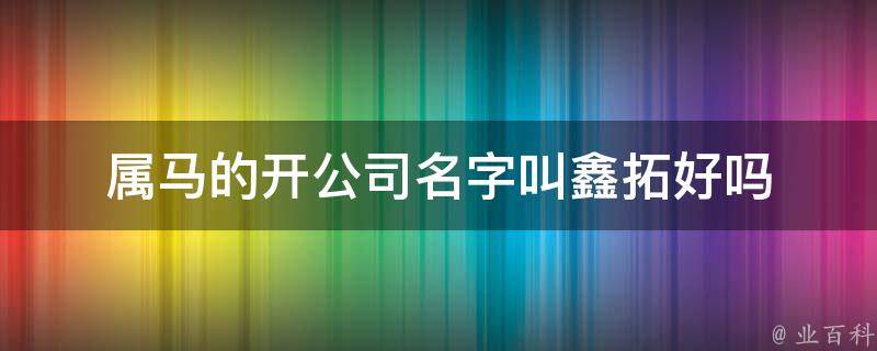 属马的开公司名字叫鑫拓好。其中鑫代表兴旺、繁荣,而拓则有开拓、拓展的意思。这个名字寓意着公司能够兴盛发达、不断开拓市场,具有积极向上的含义。但是,最终决定公司名字是否合适还需要考虑公司的行业、定位、目标市场等因素。