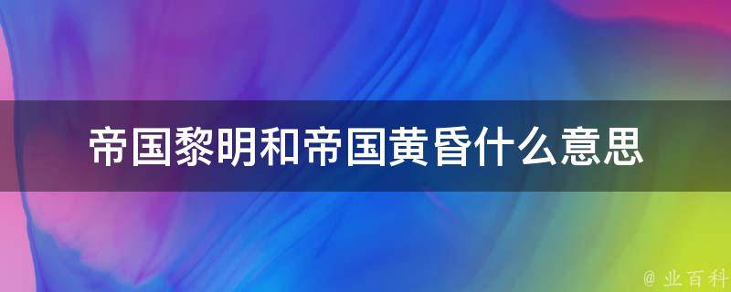 帝国黎明指的是一个帝国的建立或复兴时期。这个时期通常充满了希望和机遇,人们努力建设国家,制定规则和制度,为帝国的繁荣和发展奠定基础。帝国黄昏则通常指的是一个帝国的衰落或灭亡时期。这个时期通常充满了动荡和危机,社会秩序混乱,政治腐败,经济衰退,人们生活困苦。