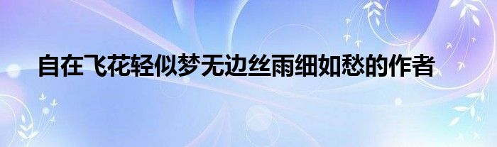 大家好,小联来为大家解答以上的问题。自在飞花轻似梦无边丝雨细如愁的作者这个很多人还不知道,现在让我们一起来看看吧!