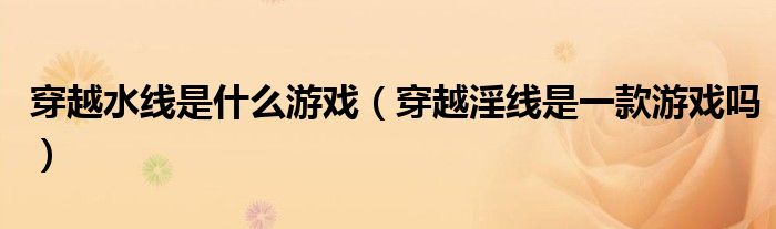 大家好,小华来为大家解答以上的问题。穿越水线是什么游戏,穿越淫线是一款游戏吗这个很多人还不知道,现在让我们一起来看看吧!