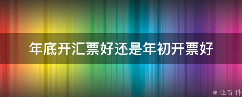 视情况而定。年底开汇票和年初开票都有各自的优点,具体选择取决于个人的需求和情况。如果需要增加银行存款、获得利息收入、降低企业资金占用等,年底开汇票可能更适合;如果需要稳定财务状况、方便快捷、减少手续费支出等,年初开票可能更适合。