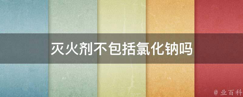灭火剂不包括氯化钠,氯化钠并不具备灭火的作用。灭火剂主要由灭火基料和抗烧结合剂组成,并包含一些抗复燃、抗发烟等添加剂,以提高其灭火效果。常见的灭火剂类型包括干粉灭火剂、泡沫灭火剂、二氧化碳灭火剂和水基灭火剂等。