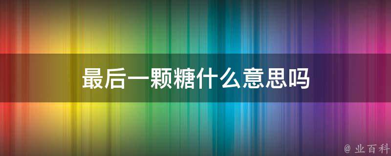 最后一颗糖意味着最后的机会或最后的甜头。这个比喻可以用来形容各种情况,例如在工作中,如果某个任务是最后的机会,那么就要全力以赴;或者在恋爱中,如果对方是最后的机会,那么就要好好珍惜。这个说法强调了机会的重要性,也提醒人们要珍惜眼前的机会。