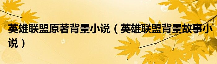 英雄联盟原著背景小说(英雄联盟背景故事小说)