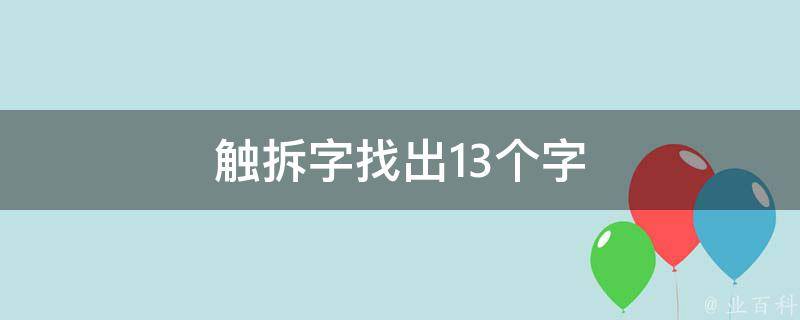 触拆字找出13个字分别是一、二、三、十、刀、丄、囗、用、冂、月、角、虫、触。触读作chu(四声),部首是角,本义指以角撞物。常用词组有触处、触点、触电、触动、触发、触犯、触感、触击、触及、触礁、触角等。