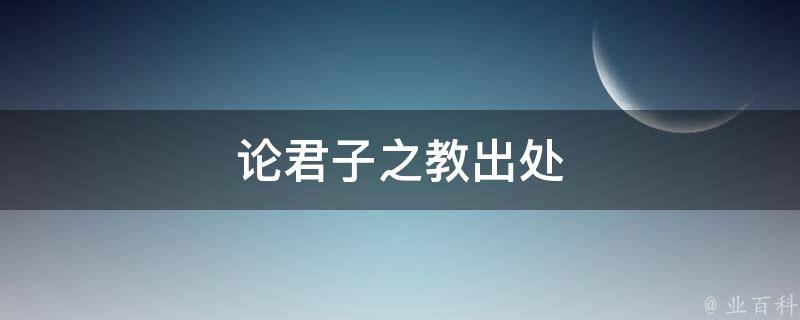 论君子之教出处是汉-戴圣《礼记-学记》。原句为:君子之教,喻也,道而弗牵,强而弗抑,开而弗达。意思是:君子教育别人,是让人明白事物的道理,重点在于引导,而不是强迫学习,是通过激励而不是去抑制,是启发而不是一通到底。