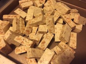 4、离火加入花生碎,放入烤盘,压实,放凉。