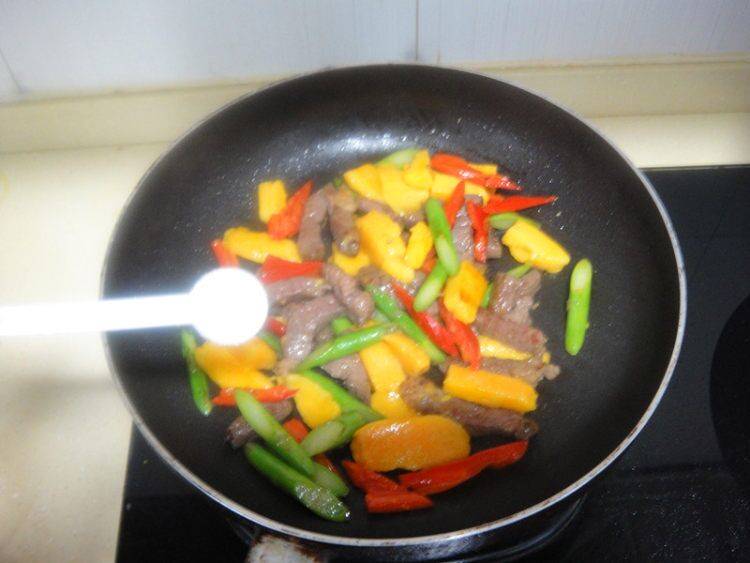 8、加芦笋翻炒。