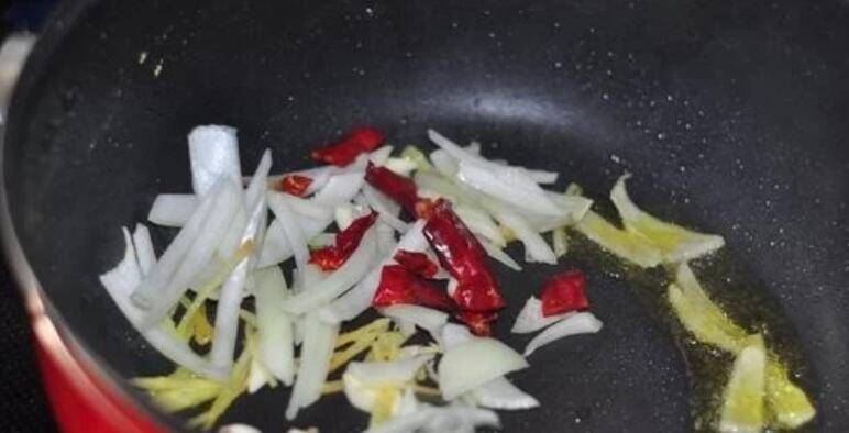 7、锅里留底油,下葱姜蒜花椒大料干红椒煸香。