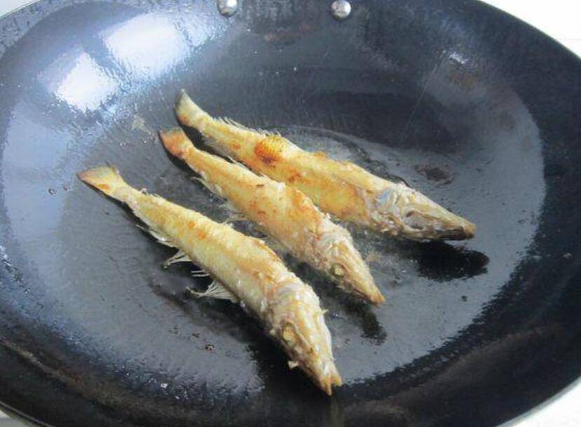 4、煎至两面变硬金黄色,把鱼放在一边。