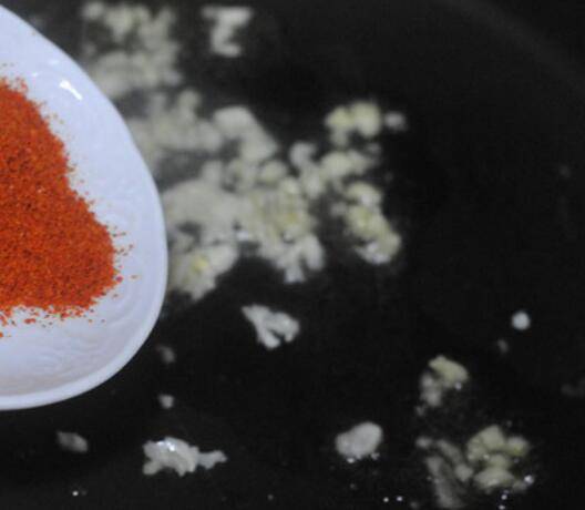 4.倒入辣椒粉翻炒