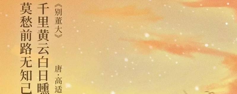 全文:千里黄云白日曛,北风吹雁雪纷纷。莫愁前路无知己,天下谁人不识君。六翮飘飖私自怜,一离京洛十余年。丈夫贫贱应未足,今日相逢无酒钱。