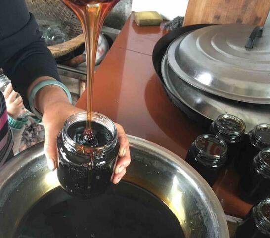 放入冰糖和川贝需小火慢熬差不多七八小时至粘稠,起锅倒进玻璃杯即可。
