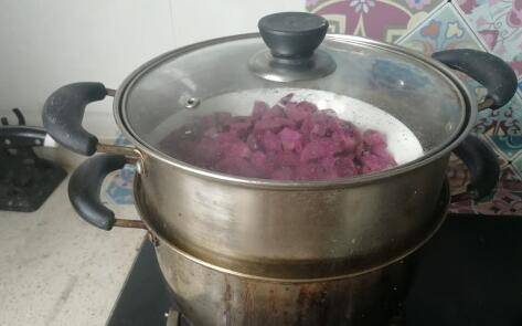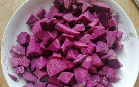 紫薯去皮后洗净;切成小块,这样容易蒸熟;
