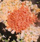 4、萝卜干切碎末,加入鸡蛋碎中炒出香味。