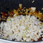 7、大蒜下锅爆香。