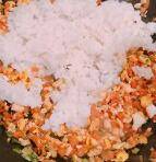 5、倒入生抽,米饭继续翻炒,加入盐。