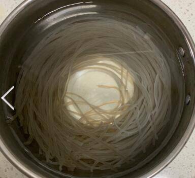 将莲白切丝,用开水将粉丝泡软。