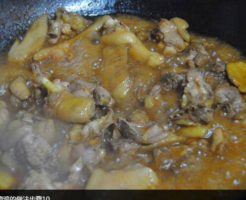 放入姜片爆香,倒入鸡块快速翻炒均匀,倒入料酒翻炒至冒酒香,鸡块慢慢煸出油。