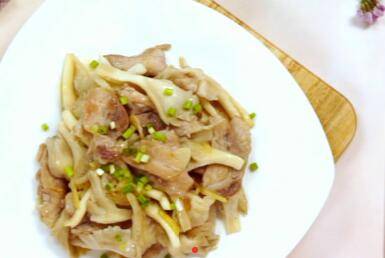 姜切丝,蒜切片,平菇撕条,猪瘦肉切片。