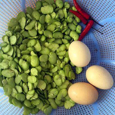 用料:蚕豆300g、鸡蛋3个、辣椒3个。