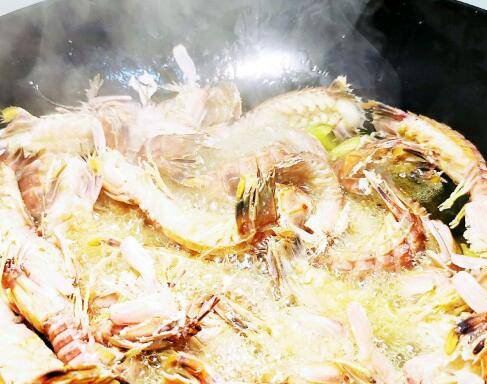 锅里放油烧热,把姜片烧几十秒,倒入濑尿虾,放料酒翻炒几下,盖上锅盖,中途不定时开盖翻炒。