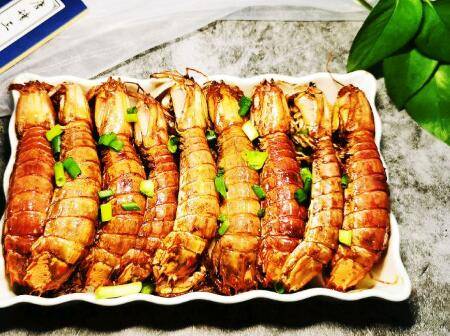 撒点葱花,濑尿虾装盘,濑尿虾外酥内软,相当美味。