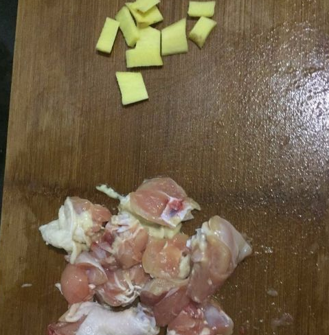 将鸡腿、胡萝卜、生姜分别洗净,切好待用;