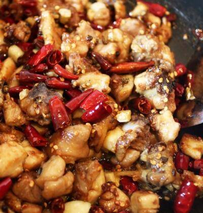 最佳答案鸡腿肉、干红辣椒、花椒、姜、蒜、白芝麻。鸡大腿切丁,加入料酒、味极鲜酱油、盐、淀粉拌匀,腌制30分钟。干红辣椒切段,花椒一把,八角掰成瓣。锅里热油,油热之后下鸡丁翻炸,炸之焦黄色即可。锅里留下底油,加姜蒜爆香。加辣椒、花椒、八角。炒至辣椒开始变色加入鸡丁翻炒。然后加入白芝麻,最...