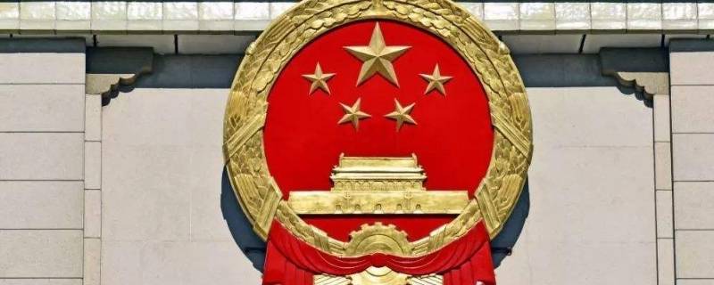 中华人民共和国国徽的内容为国旗、天安门、齿轮和麦稻穗,象征中国人民自“五四”运动以来的新民主主义革命斗争和工人阶级领导的以工农联盟为基础的人民民主专政的新中国的诞生。四颗小五角星环绕一个大五角星,象征着中国共产党领导下的全国人民的大团结,齿轮和麦稻穗象征着工人阶级领导下的工农联盟。