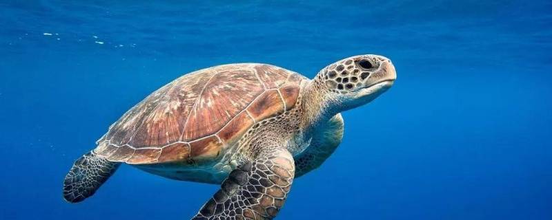 海龟是海龟科、海龟属动物。头背具对称大鳞,前额鳞一对。上颌平出,下颌略向上钩曲,颚缘有锯齿状缺刻。吻部短圆,上颚前端不成钩曲。背甲呈心形,盾片镶嵌排列;椎盾5枚;肋盾4对,第一对肋盾不与颈盾相接,缘盾每侧11片;喉盾前有单枚问喉盾;背腹甲间有一系列下缘盾。四肢桨状,前肢长于后肢,每肢内侧各具1爪。背甲橄榄色或棕色,杂有黄白色放射纹;背甲橄榄色或棕褐色,杂以浅色斑纹;雄陛尾长,达体长的二分之一,前肢的爪强大而弯曲成钩状。