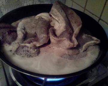 4、在锅里烧一锅开水,将羊肚放进开水中烫一下,要立马捞出,否则容易烫过头。