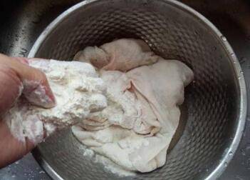 1、首先将羊肚放在加了白醋的温水里边浸泡几分钟再搓洗。