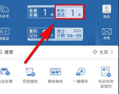 2、然后在打开的首页点击“未处违法”。