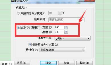 进入到图像调整大小的界面之后,点击大小,将宽度和高度数值修改为需要的数值即可,然后点击确定,这样就可以将JPG格式的图片缩小了。