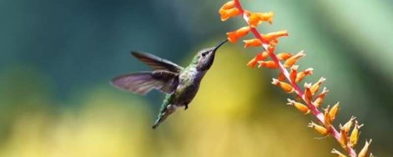 吸蜜蜂鸟。吸蜜蜂鸟是世界上最小的鸟之一,也是世界上最小的温血动物。身长约5.6~6.5厘米,包括了嘴及尾羽的长度。体积比虻还小,粗细不及熊蜂。平均体重只有2克,比一枚硬币还轻,卵重0.2克,和豌豆粒差不多。喙细长如针,舌头则如一根纤细的线。雄鸟上身为有光泽的蓝绿色,喉鲜红色,喉颈部有彩虹色横向羽状,腹部为白色。雌性体型略小,基本上上体为绿色,下体浅灰色,外侧飞羽为白色。吸蜜蜂鸟与其他蜂鸟相比,看似丰满矮胖,如同闪亮的小宝石。