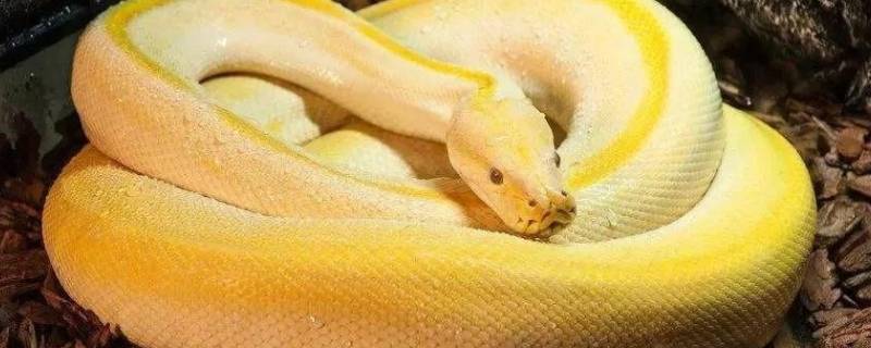 金黄色的蛇是黄金蟒。属于缅甸蟒蛇的白化突变种,是一种十分稀少的变异品种。黄金蟒的成体可以长到约7米长。黄金蟒成体长度通常在5~6米,最长可以达7米,并且雌性体型比雄性庞大。其通体金黄并有白色不规则纹路,鳞片滑顺,头顶具有大鳞片以及热感颊窝。黄金蟒和其它蛇类一样四肢全部退化,只有尾部留有很小的残肢;雄蛇交配时用残肢刺激雌蛇完成交配。