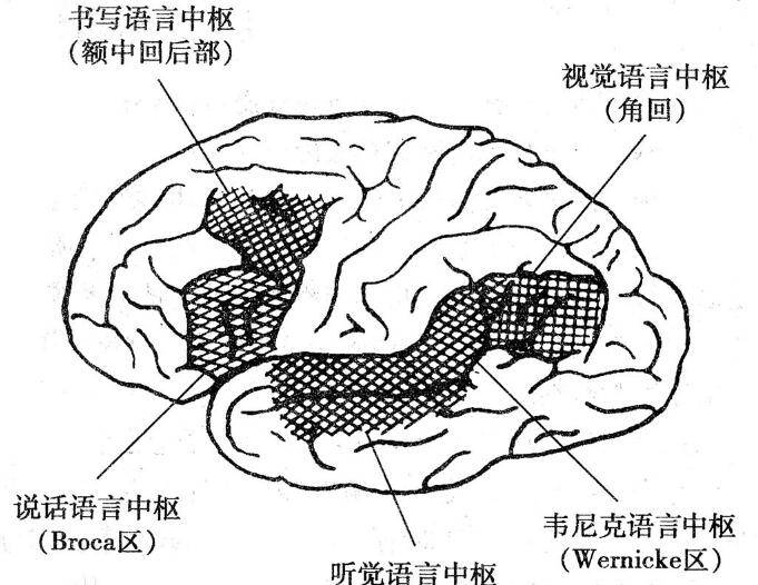 3、书写性语言中枢(书写中枢):位于额中回的后部,此处受损,虽然其他的运动功能仍然保存,但写字、绘画等精细运动发生障碍,临床上称为失写症。