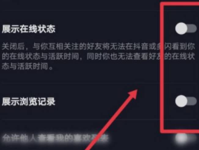 5、最后将展示在线状态、展示浏览记录功能关闭即可实现隐身访问。