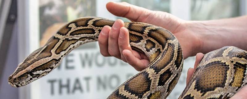 蟒蛇,蟒科蟒属大型爬行动物,体长常见的3-5米。头颈部背面有一暗棕色矛形斑,头侧有一条黑色纵斑从鼻孔开始,经眼前鳞、眼斜向口角。眼下亦有一黑纹向后斜向唇缘,下唇鳞略有黑褐斑,头部腹面黄白色,体背棕褐色、灰褐色或黄色,体背及两侧均有大块镶黑边云豹状斑纹,体腹黄白色。头小,吻端较平扁,吻鳞宽大于高,背面可见,鼻孔位于鼻鳞两侧,鼻间鳞长度不到宽度的1.5倍;其后为一对较大的前额鳞;额鳞成对;眼中等大,瞳孔直立,椭圆形;眼前鳞2;眼上鳞1,较大;眼后鳞3或4;眼下鳞1;头顶、颞部均为较小的鳞片;上唇鳞11-13片,第1、2上唇鳞有唇窝;体鳞光滑无棱,颈部54-64行,中段64-72行,肛前40-44行;腹鳞窄小255-263片;肛鳞完整;泄殖肛孔两侧具爪状后肢残迹,尾下鳞63-71对。