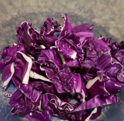 2、紫甘蓝一片片剥开洗净,用手撕成小块。