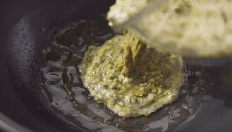 8、锅中倒入适量油,烧至七成热,倒入香椿蛋液。