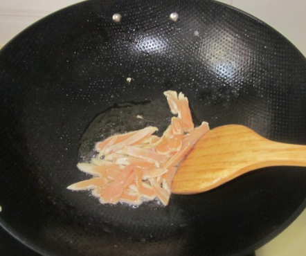 倒少许油炒白鸡肉;
