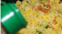 米饭适量、青瓜适量、火腿肠适量、土鸡蛋适量、盐适量、黑椒粉。