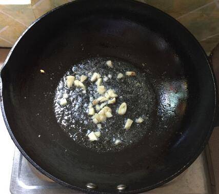 锅中留底油,下大蒜末。